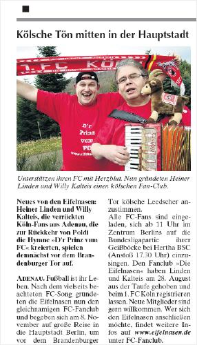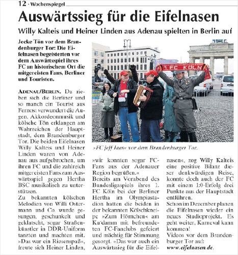 Bericht über die Eifelnasen im Wochenspiegel Adenau vom 08.April 2009 [3.489 KB] (hier Artikel zum Download)